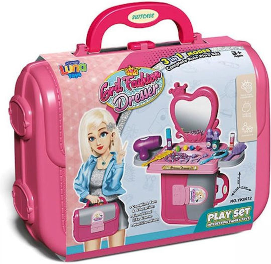 Το βαλιτσάκι περιέχει αξεσουάρ ομορφιάς όπως μπιστολάκι μαλλιών, χτένα, καθρέφτη, κ.ά.