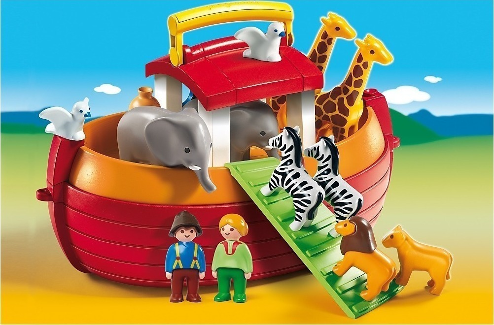 Από την βρεφική σειρά της Playmobil 1-2-3 η Κιβωτός του Νώε. Ο κύριος και η κυρία Νώε ετοιμάζονται για το μεγάλο ταξίδι τους, ενώ τα ζωάκια ανεβαίνουν σιγά-σιγά στην κιβωτό.